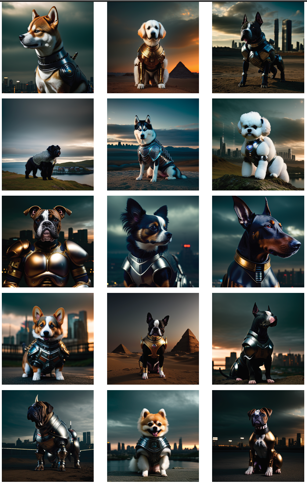Cyborg Shiba Inu and friends ready for battle...so cute it hurts. A full set includes fifteen of these little cuties.