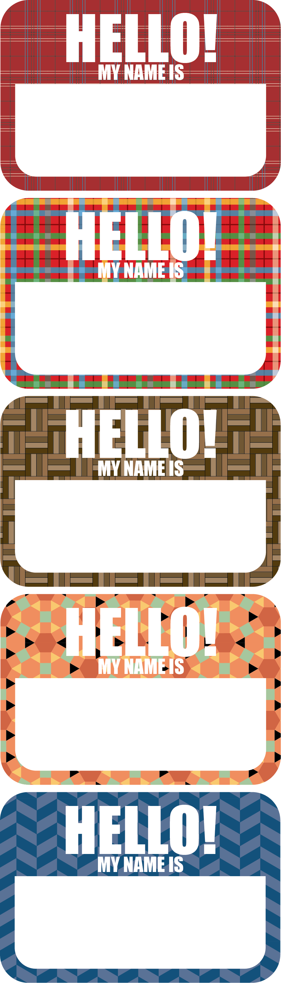 These low gloss name tag labels stick real nice to clothing like one might expect. Use permanent marker to draw on a name for the night, and they're available in some interesting patterns so one really gets to express oneself.